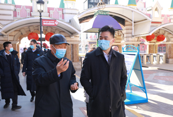 會后,曹群同志一行前往各部室,并深入景區售票口、俄羅斯風情街、飛車特技表演場地等,就航母年卡銷售及線上宣傳情況、疫情防控、春節布展等進行現場調研督導,并與游客進行了面對面交流。