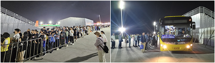 為有效紓解夜場散場交通壓力,中秋期間,泰達航母積極協同濱海公交,首次在北島設立夜場定制公交專線接駁點,為游客提供更加便捷的公共交通服務,同時有效緩解了內外部交通疏導壓力,有效保障夜場疏散井然有序。