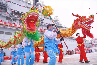 春節期間,泰達航母特邀十位津門非遺文化傳承人和民間手藝人登上航母,現場開展剪紙、糖畫、泥人創作等民俗活動,游客紛紛前來觀賞品玩。表演場內,國內頂尖汽車特技表演團隊華家班帶來精彩絕倫的特技表演,引來現場陣陣掌聲和歡呼。“基輔號”航母、潛艇、驅逐艦游人絡繹不絕。