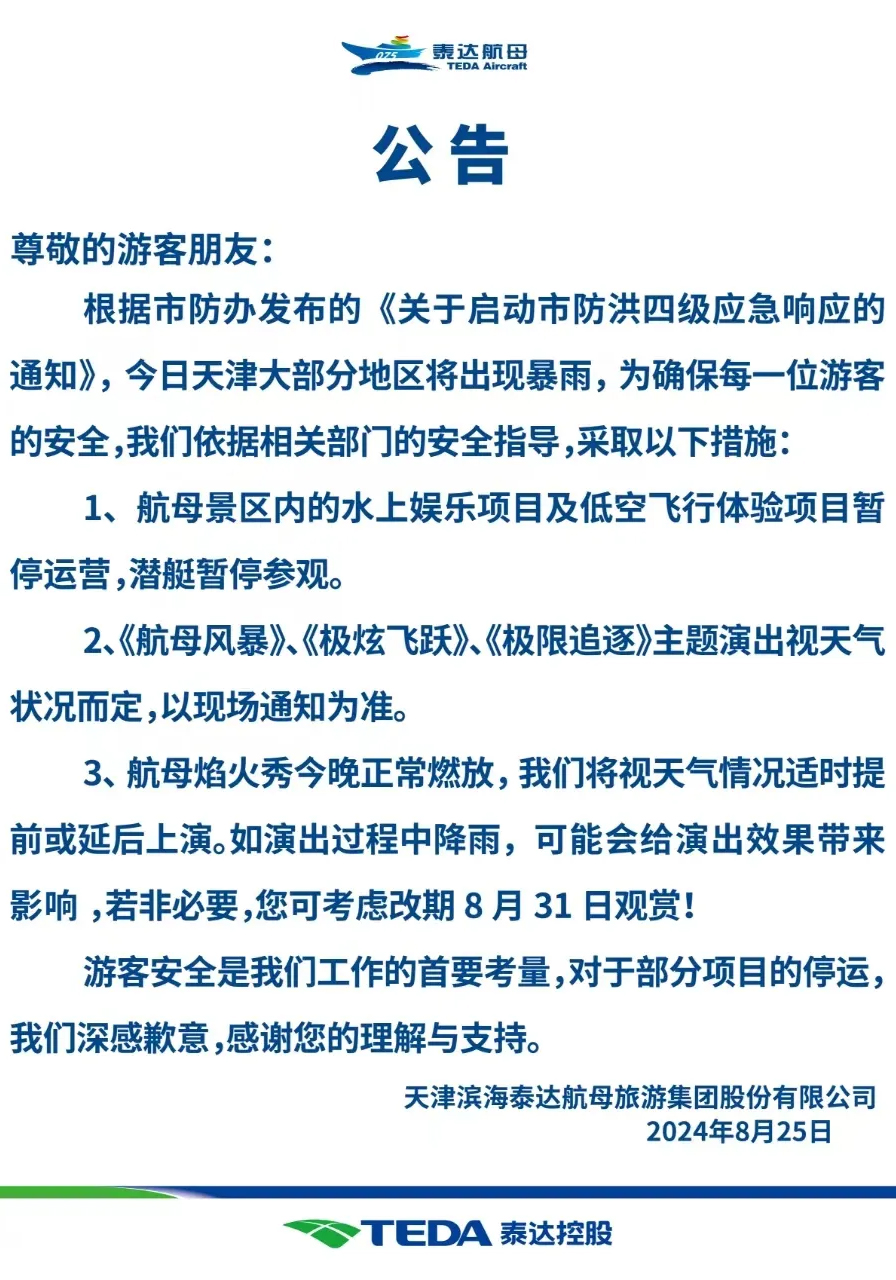 2024年,國內(nèi)旅游市場持續(xù)火熱,旅游經(jīng)濟持續(xù)領(lǐng)跑。泰達航母深入學(xué)習(xí)貫徹習(xí)近平總書記視察天津重要講話精神以及對旅游工作作出的重要指示,緊扣“三新”“三量”工作要求,堅持“穩(wěn)中求進、以進促穩(wěn)、先立后破”工作總基調(diào),以起跑即沖刺、開局即爭先的拼勁,乘勢而上、創(chuàng)新突破,在激發(fā)夜經(jīng)濟活力、拓寬經(jīng)營維度、升級業(yè)態(tài)布局、提升旅游服務(wù)等多方面持續(xù)發(fā)力,拉動航母旅游熱度持續(xù)攀升。上半年,泰達航母客流量同比增長65%;收入同比增長44%;凈利潤同比增長1.4倍,再創(chuàng)歷史新高。并創(chuàng)下了航母歷史上的3個“首次”——首次在上半年實現(xiàn)收入突破1億元大關(guān),首次突破單日游客量超3.3萬人次,首次在一季度即實現(xiàn)利潤為正,以強勁勢頭勇攀高質(zhì)量發(fā)展新高峰。一、創(chuàng)新求變“擴增量”,打造經(jīng)濟增長強勁引擎創(chuàng)新創(chuàng)意是推動文旅發(fā)展的重要驅(qū)動力,是文旅經(jīng)濟持續(xù)繁榮的關(guān)鍵所在。上半年,泰達航母堅持創(chuàng)新引領(lǐng)、突破升級,積極打造經(jīng)濟新增長點。一是突破自我、首開先河,首次在“春節(jié)”“五一”重大節(jié)假日期間開放夜場,上演大型焰火無人機表演,再創(chuàng)歷史同期最好業(yè)績。其中“春節(jié)”游客量較去年同期增長超6倍,收入增長超5倍;“五一”游客量較去年同期增長23%,收入增長28%。二是開疆拓土、拓寬維度,以常態(tài)化開展大型夜場焰火項目為核心,大力開發(fā)北島,拓展焰火觀演空間,首次通過“造節(jié)”方式于5月18日舉辦“我在航母說愛你——520”夜場活動,正式將焰火觀看區(qū)域挪至北島,并新增北島大型實景特技演出《極限追逐》、星光美食集市、兒童無動力游樂區(qū)以及水上動感體驗項目等休閑娛樂業(yè)態(tài),不斷豐富航母夜游體驗,持續(xù)拉動航母夜經(jīng)濟增長。5月18日當(dāng)日游客量較去年同日增長2.7倍,收入增長3倍。三是文創(chuàng)引領(lǐng)、優(yōu)化業(yè)態(tài),以“航母編隊”、軍事武備為原型,以“吉福”“抱豹”“妃妃”卡通形象為主題,相繼推出近百款文創(chuàng)產(chǎn)品、旅游紀念品,逐步迭代景區(qū)原有商品結(jié)構(gòu),上半年文創(chuàng)產(chǎn)品銷售額已占商品總銷售額的31%。調(diào)整風(fēng)情街經(jīng)營模式,從傳統(tǒng)的單一收取租金轉(zhuǎn)變?yōu)楹献鹘?jīng)營,以充分市場化模式使合作商之間產(chǎn)生良性競爭,極大提升了風(fēng)情街游覽環(huán)境,豐富了消費業(yè)態(tài),拓展了經(jīng)營收入。上半年,景區(qū)二次消費收入較去年同期增長46.5%。二、精準(zhǔn)施策“盤存量”,釋放資源最大潛能為進一步盤活國有資產(chǎn),確保資產(chǎn)的完整性,為5A級旅游景區(qū)創(chuàng)建、北交所上市等重點工作奠定基礎(chǔ),在泰達控股、泰達集團的鼎力支持下,泰達航母積極爭取政策支持,通過精準(zhǔn)的市場分析和成本估算,并經(jīng)過前期一系列預(yù)審程序,最終于6月28日成功競拍兩宗瑕疵土地,解決了存在近十年的歷史遺留問題。為大力推動航母從傳統(tǒng)軍事觀光游轉(zhuǎn)型為科普沉浸體驗游,深度挖掘航母內(nèi)部空間價值,上半年重點開展了“基輔號”航母艦上升級改造——“航母征程”項目策劃,計劃年底前對“玄武巖導(dǎo)彈庫”與“艦載機升降平臺”實施數(shù)字化改造升級,旨在以數(shù)字化、多媒體等科技手段,活化航母,為游客打造沉浸式旅游體驗,增強國防教育和文化傳播效果,進一步提升航母品牌形象。三、多措并舉“提質(zhì)量”,筑牢高質(zhì)量發(fā)展堅實基礎(chǔ)旅游服務(wù)作為旅游產(chǎn)品的核心內(nèi)容,提升服務(wù)質(zhì)量無疑是增強景區(qū)吸引力、增強核心競爭力的關(guān)鍵所在。上半年,泰達航母對標(biāo)5A景區(qū)要求,著力解決了多年來景區(qū)污水管線沒有與市政管網(wǎng)連接的問題;新建并改擴建了景區(qū)衛(wèi)生間,新增了155個廁位、完善了第三衛(wèi)生間、母嬰室等功能;擴建了停車場、新增停車位1000余個;夜場期間協(xié)調(diào)臨時開通了漁澤路作為散場疏散通道,加開了夜場專線,免費提供往返北島擺渡車等等,為游客提供了更加舒適、更為便捷的游覽環(huán)境。在強化全員服務(wù)意識方面,大力開展了全員服務(wù)大討論大整改活動,讓“思想煥新”緊跟“項目更新”的步伐,建立服務(wù)提升長效機制。聚焦管理效能提升,上半年成功申報夜經(jīng)濟高質(zhì)量發(fā)展專項資金補貼100萬元;不斷完善智慧景區(qū)建設(shè)基礎(chǔ),實現(xiàn)票務(wù)信息、關(guān)鍵點位監(jiān)控信息可視化,實現(xiàn)景區(qū)二次消費系統(tǒng)統(tǒng)一管理;壓減法人戶數(shù),按期完成濱實餐飲吸收合并工作;持續(xù)提升融資能力,置換非標(biāo)貸款,降低融資成本;持續(xù)發(fā)揮績效考核“指揮棒”作用、激勵作用,強化制度執(zhí)行,激發(fā)全體干部職工積極性和創(chuàng)造力,始終保持向上進取、奮發(fā)有為的干事氛圍,為景區(qū)長遠發(fā)展奠定堅實基礎(chǔ)。風(fēng)勁潮涌,自當(dāng)揚帆破浪;任重道遠,更需策馬加鞭!上半年,泰達航母以極大的勇氣和魄力,探索新項目、